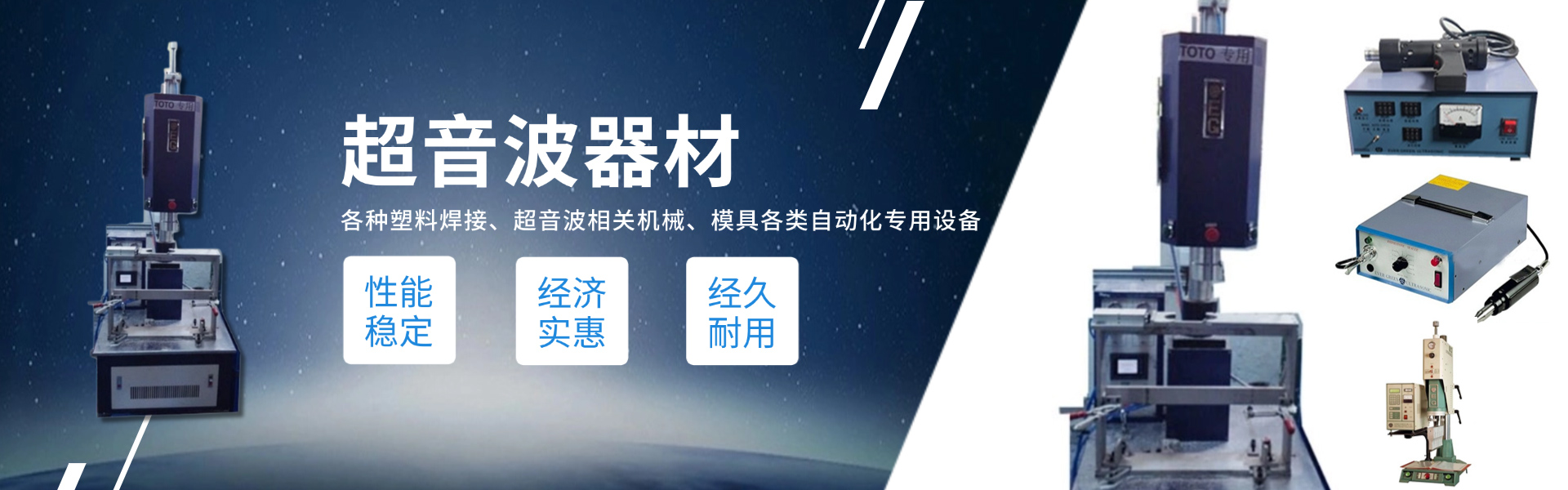 廈門萇榮機械設備有限公司是長榮超音波集團在福建設立的公司,我們主要供應臺灣長榮系列超聲波機器。 長榮超音波集團成立于1991年,麾下的兩個生產基地,分別建立在臺灣和上海,公司主要專業設計指導各種塑料焊接、超音波相關機械、模具及以本業為核心結束各類自動化專用設備。 廈門萇榮機械設備有限公司是集生產、銷售、模具制造、非標自動化設計制造、售后服務為一體的超音波設備福建公司,集團公司及本公司成立二十余年來,設備技術日趨完善,并通過ISO-900認證,在超聲波行業有良好的信譽。 目前我公司產品系列有: 1)超聲波塑膠熔接設備及模具; 2)高精度自動追頻超聲波焊接機; 3)超聲波縫制機系列; 4)超音波清洗系列; 5)熱板式焊接機系列及模具; 6)汽車零部件生產設備; 7)各種非標專用機設備設計與制造。